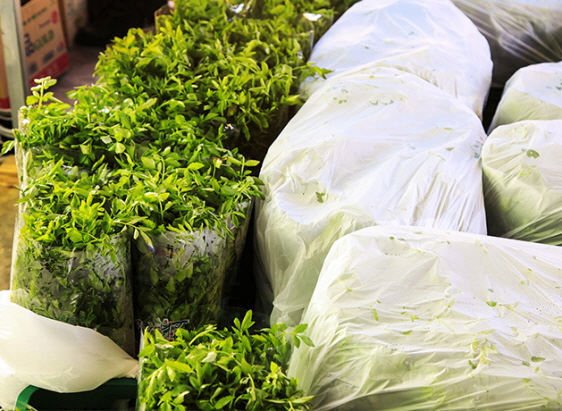 1. 굵은 뿌리와 부분적으로 검은 부분을 자른 후 찬물에 담갔다가 건져냅니다.
