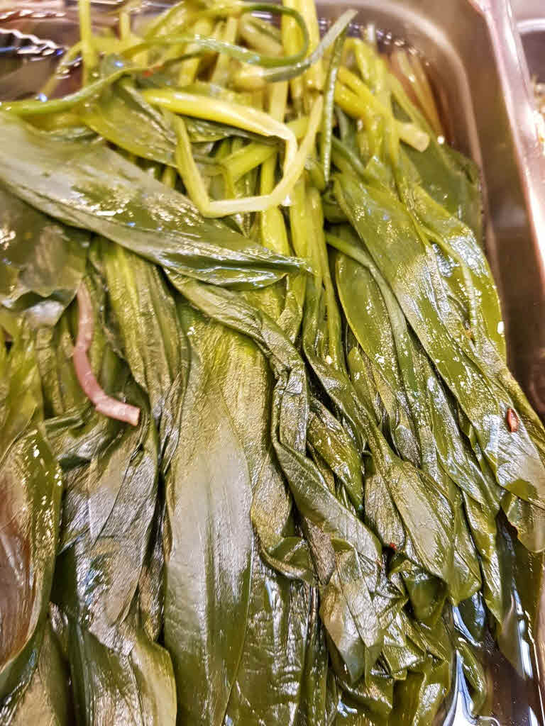 2. 산마늘을 끓는 물에 30초간 살짝 데칩니다.