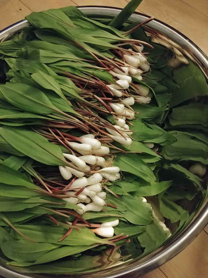 3. 산마늘을 찬물에 씻어 식힙니다.