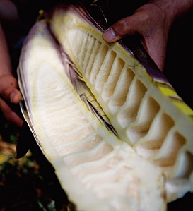 그 하얀것을 뽑아내어 뜨거운 물에 데친 다음 맛있는 초장에 찍어 먹을 때 너무 맛있었던 기억이 나는데요.