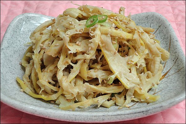 죽순 샐러드는 상큼한 드레싱과 함께 죽순의 신선함을 느낄 수 있는 요리입니다.