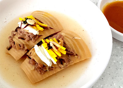 - 참기름을 뿌리고 깨소금을 뿌려 완성합니다.