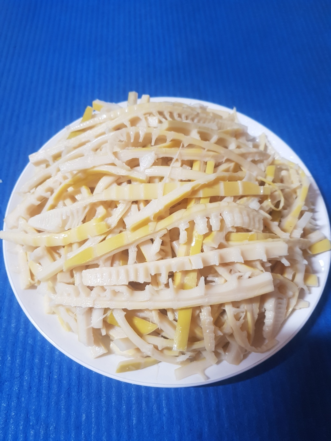 - 죽순은 끓는 물에 2-3분 데친 후 얇게 채 썰어 준비합니다.